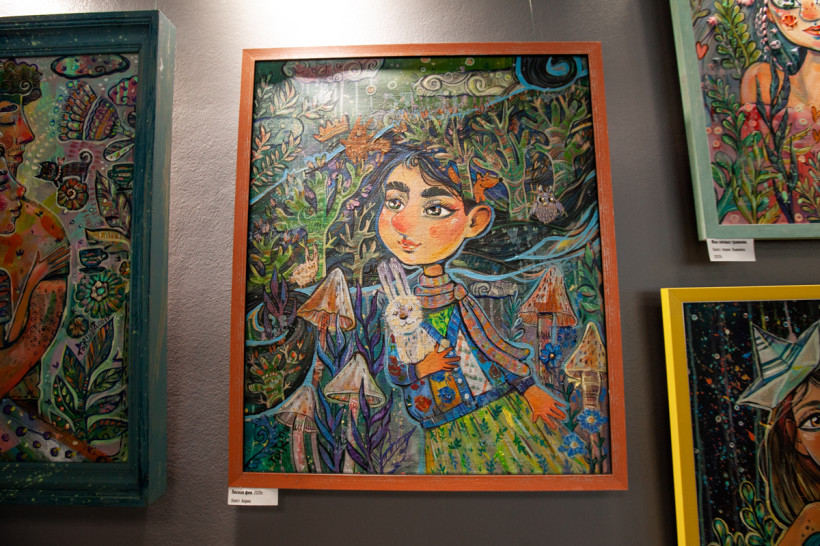 — Мои работы — про бурную радость и неспешное удовольствие, мечтательность и обнимашки. В них много цвета. Много мелких деталей, которые интересно разглядывать. Мой стиль рисования ни с кем не спутаешь — как будто заглянул в детскую книжку со сказками. Персонажи моих картин — забавные носатые девчонки, похожие на меня, глазастые коты и пузатые птички. Сочетание текучих плавных линий и экспрессивного набрызга и мазков, — описывает свой стиль Анна Тюрина.