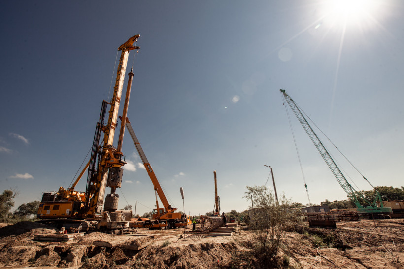 — Первый этап — это сооружение основания на буронабивных сваях. При помощи буровых машин устраивается скважина глубиной от 30 до 35 метров. В нее устанавливается арматурный каркас. И все заливается бетоном, — объяснил начальник участка буровых работ Павел Попов. — Качество уложенной бетонной смеси проверяется ультразвуком.