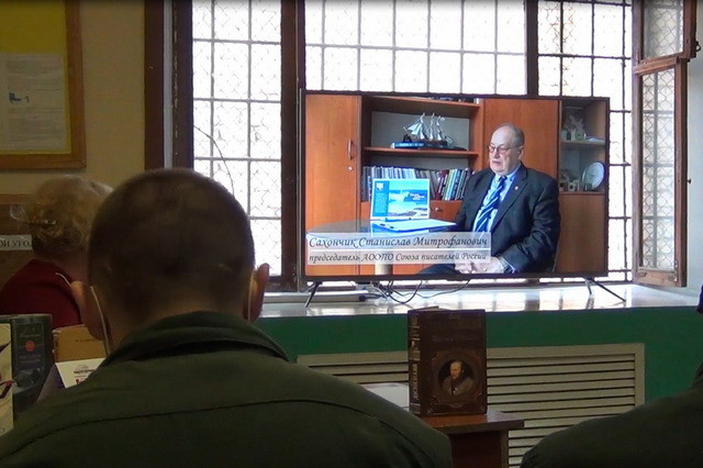 Слушатели узнали об основных вехах творческого пути великого русского писателя и познакомились с книгами, которые привезли с собой специалисты областной научной библиотеки. Особенно осужденным понравилась видеовстреча с председателем амурского филиала военно-научного общества писателем Станиславом Сахончиком.