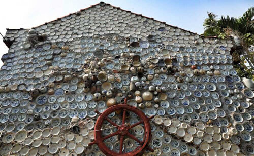Боясь, что весь его фарфор разобьется или наследники продадут тарелки и чашки, мужчина решил прикрепить все богатство к стенам собственного дома. Так вся фарфоровая посуда появилась на наружных стенах жилища, заборе и внутренних помещениях. В общей сложности дом 58-летнего чудака украшен 10 000 предметов.
