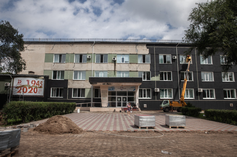 Обновляется внешний вид и Амурской областной филармонии. Сейчас рабочие сняли старые цокольные плиты с фасада и разобрали старое крыльцо. Обновления здесь должны завершить к сентябрю — к началу двух фестивалей «Золотая маска» и «Амурская осень».