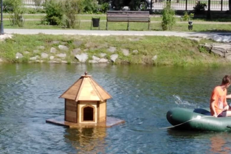 Плавающий домик для утки появился в парке Дружбы в Благовещенске