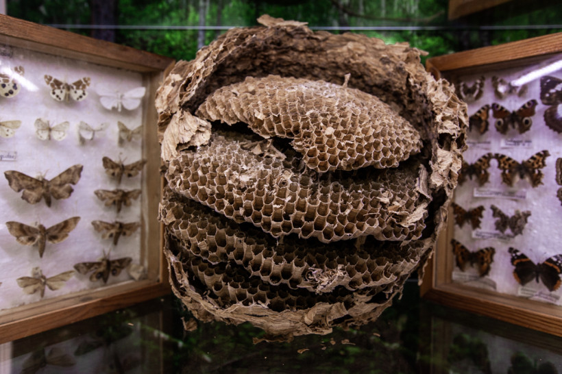 — Вот это огромное гнездо мы сняли в доме на кордоне. Несколько лет специалисты вытравливали его, и только потом, убедившись в безопасности, выставили в визит-центре. Ему уже 10 лет, — показывает шершневой улей с хороший арбуз Татьяна. — Рядом у нас лежат раковины моллюсков, например синодонты амурской и беззубки китайской.