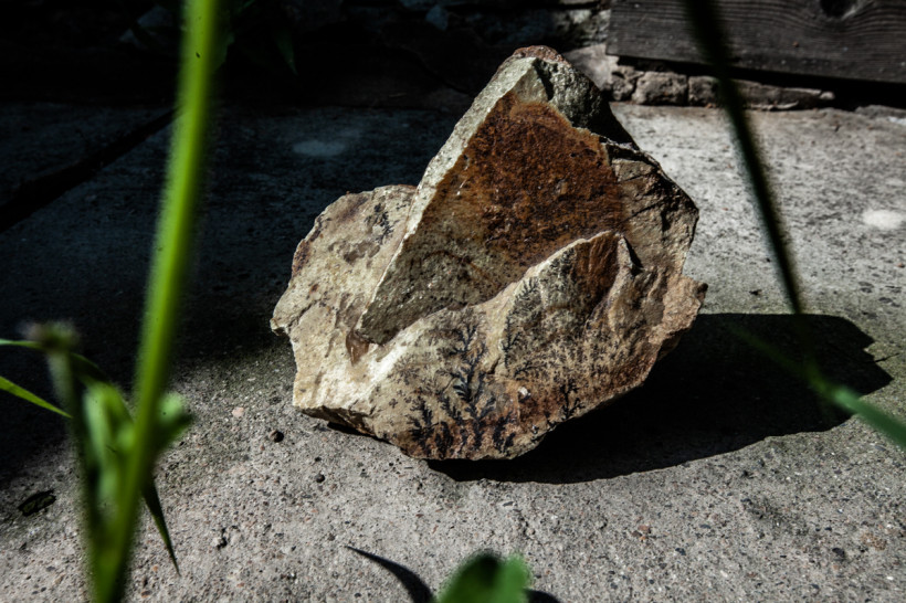 Последняя группа стендов — археологические находки. Главная — позвонок динозавра по имени «Гигантский лебедь из Архары». Статуэтка, изображающая доисторическую рептилию, стоит рядом для наглядности. Ниже — отпечатки растений на камнях, причем листья видно довольно отчетливо. «Мы достаем, показываем этот камень, — Татьяна демонстрирует самый популярный из экспонатов с черными отпечатками листов, похожих на папоротник. — Видите? Это не нарисовано, стереть невозможно. Отпечаткам около 60 миллионов лет». Чуть выше — керамика и наконечник оружия наших предков.