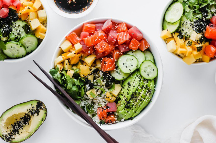 Первый и по порядку, и в моем личном топе — рецепт поке. Это гавайское блюдо выросло в ресторанное из вынужденного рыбацкого обеда. Мы готовим его дома с кускусом. Эту крупу не надо варить, поэтому времени на приготовление уходит минимум.