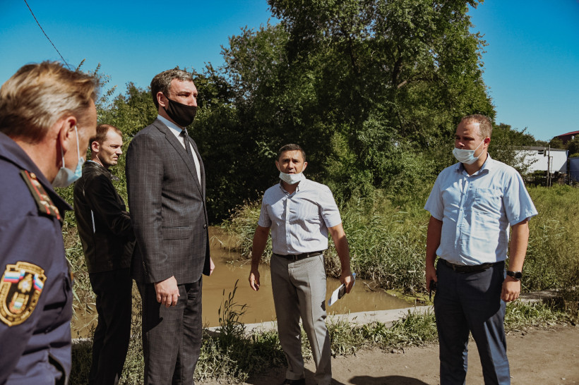 Пообщавшись с местными жителями, губернатор поинтересовался: откуда шел поток воды и что стало причиной подтопления. По мнению верхнеблаговещенцев виной всему — отсутствие прохода воды в русло реки Амур. Раньше поток воды уходил в реку по старому руслу, а сейчас на его месте размещены промышленные предприятия.