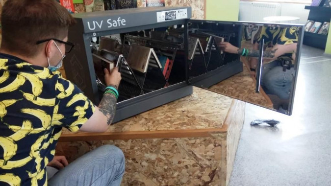 Обеззараживающий бокс оснащен тремя безозоновыми бактерицидными лампами. Стерилизация книг и журналов происходит за счет ультрафиолетового излучения. Механизм обеззараживания основан на необратимом повреждении ДНК и РНК вирусов и бактерий, что приводит к их 100-процентной гибели. В обеззараживающем боксе уничтожаются и коронавирусы, устойчивые к другим средствам стерилизационной обработки.