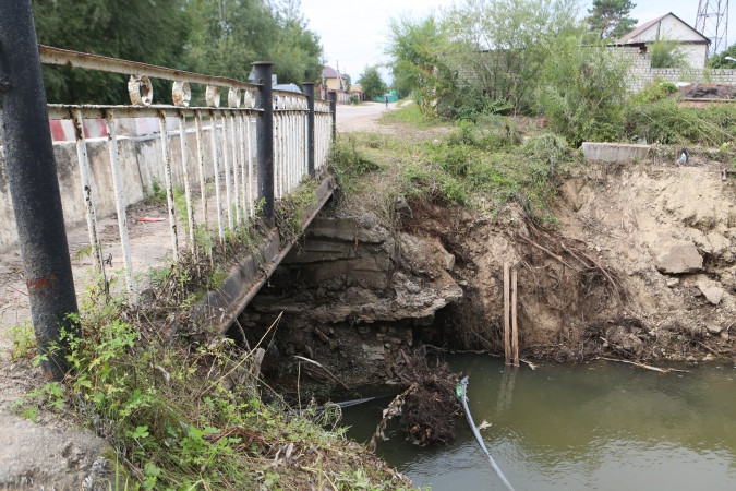 Подмытый дождями мост в Верхнеблаговещенском признан небезопасным. Его решено демонтировать. Для жителей отсыпана грунтовая дорога.