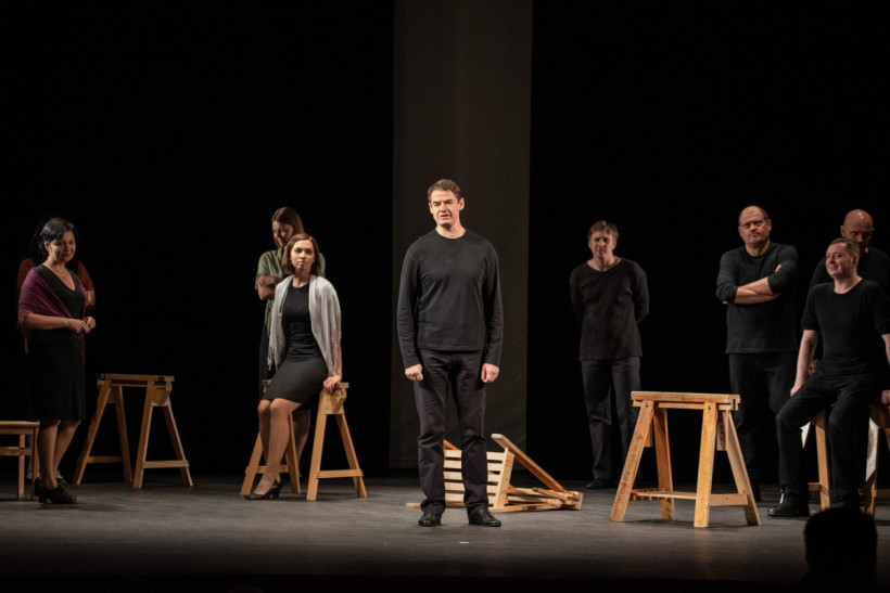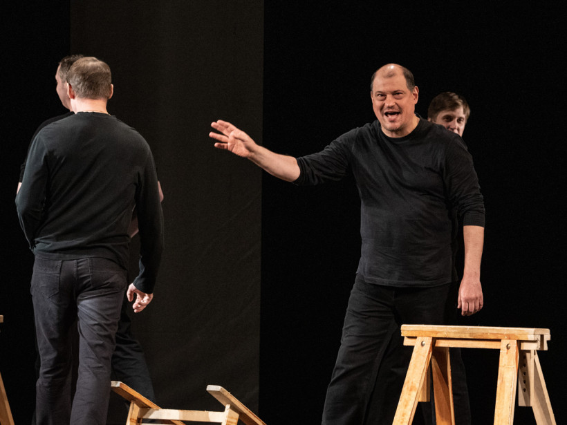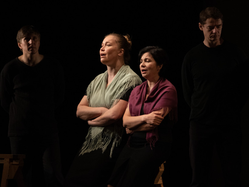 В «Гусе» нет специальных декораций и нет ролей — тех, к которым мы привыкли. Едва начав вычленять главных героев и сочувствовать их судьбе, мы видим, как текст персонажей перехватывают другие актеры. По очереди каждый становится то Данилой, то Мариной, то голосом автора. Не сразу понимаю, что на сцене один герой — и это текст. Художественное произведение, которое оживляют своими голосами несколько актеров. Некоторые критики обвинили спектакль в том, что по факту он — просто чтение рассказов Астафьева. И это действительно так. Это чтение, но какое чтение… Актеры бережно несут текст писателя то громкой песней, то шепотом, то срываясь на крик — несут его так, что вместе с текстом ты смеешься, подпеваешь, вздыхаешь, а потом просто рыдаешь — и не можешь остановиться.