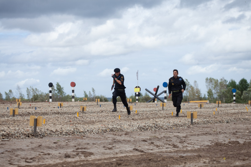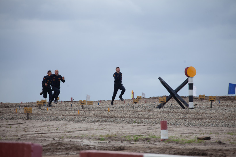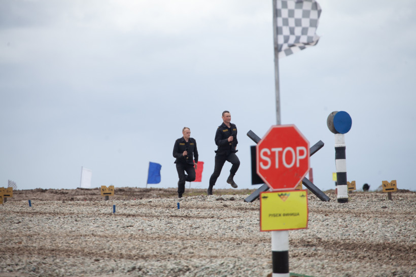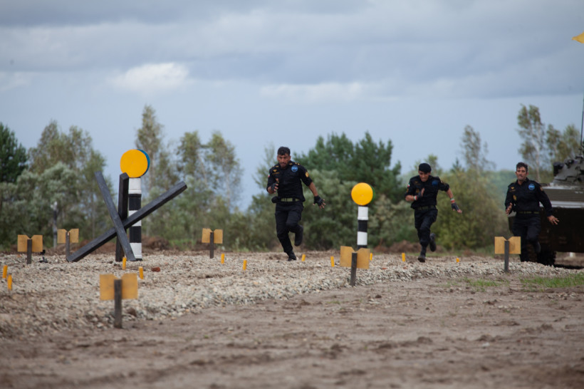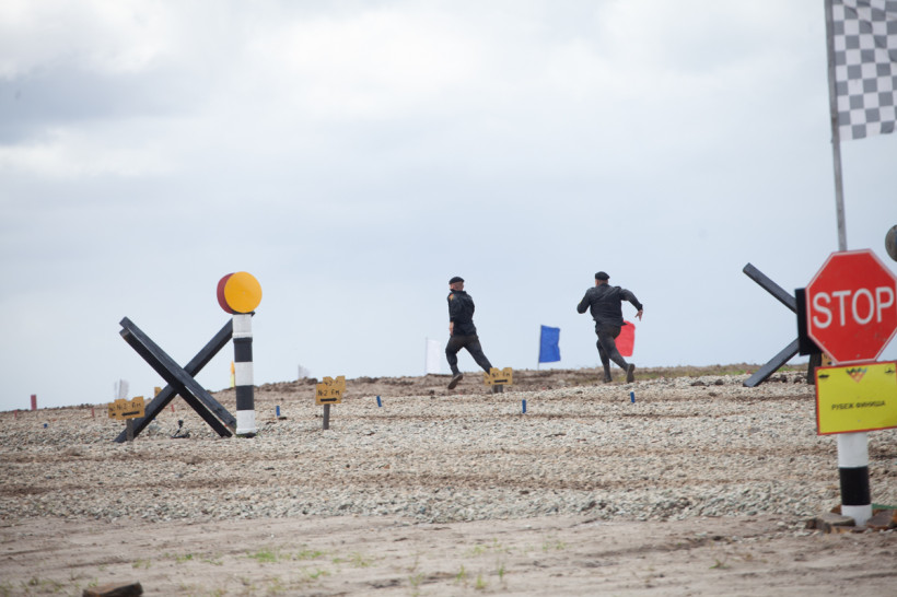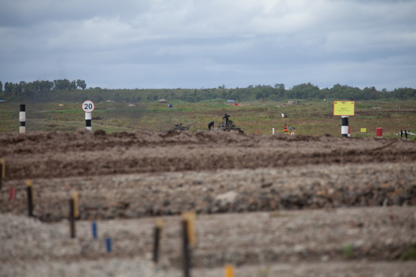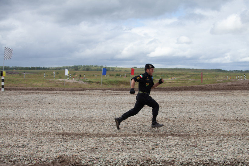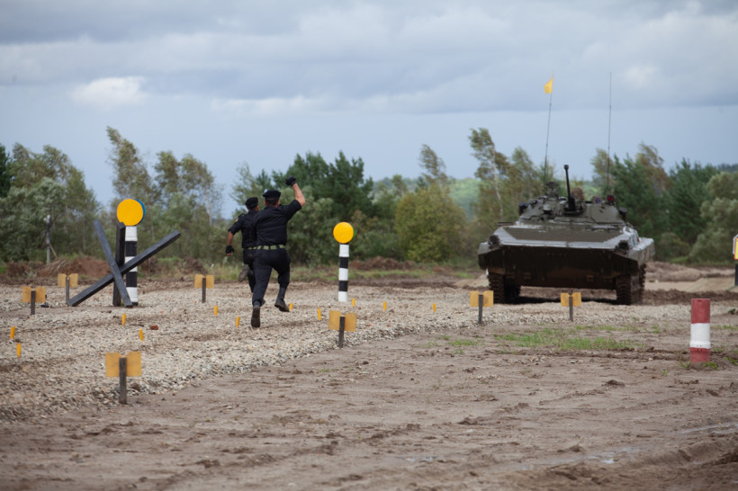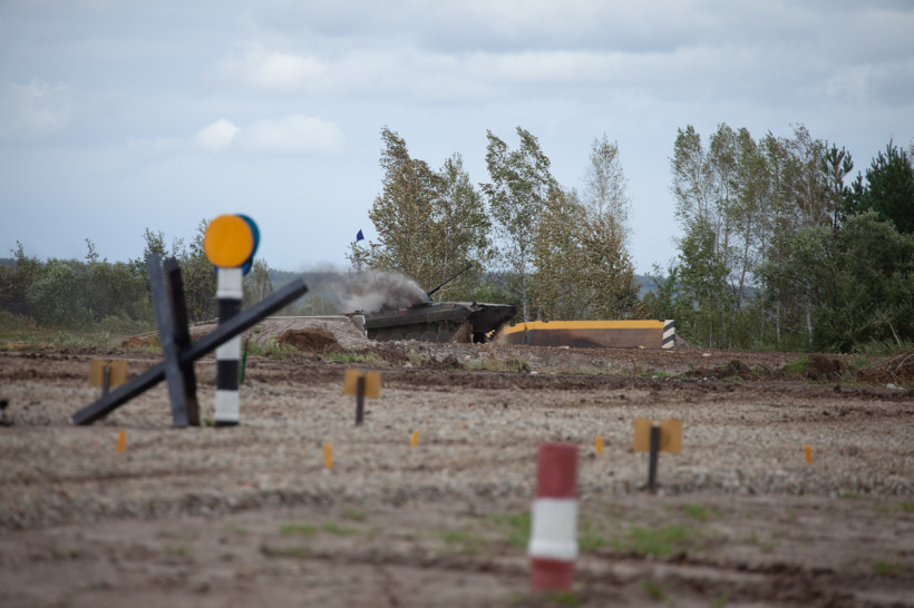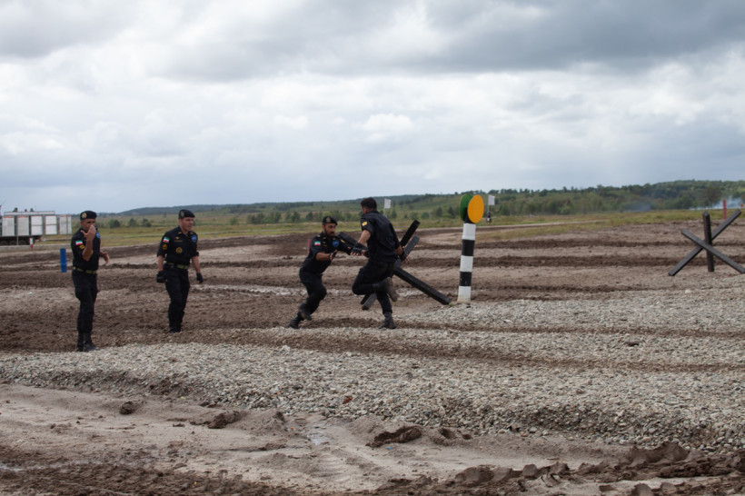 Один круг — это 4,5 километра, на которых уместились колейный мост, минное поле, огненная полоса, брод и еще несколько сложных препятствий. А еще несколько огневых точек, из которых нужно поразить мишени — вертолет, БМП и нескольких минометчиков.