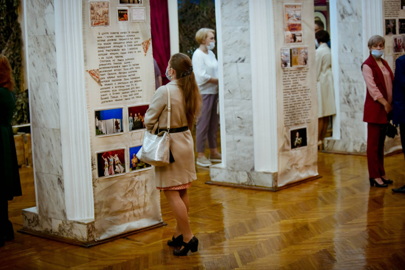 — Архивные документы и фотографии, пожелтевшие от времени театральные программки, сцены из спектаклей военной тематики, инсталляции и фотозоны — мы очень надеемся, что выставочный проект позволит всем нам заново осмыслить память о тяжелом испытании, которое выпало на долю нашей страны, — отметила на открытии выставки директор театра Татьяна Бедина. — Без памяти о прошлом, без благодарности к тем, кто подарил нам мирное небо над головой, невозможны свобода, любовь и творчество. Знать героическое прошлое страны и гордиться теми, кто выстоял в борьбе с фашизмом, — нравственный долг каждого из нас. Несмотря на то, что время всё больше отдаляет нас от событий тех лет, память о них никогда не померкнет, и это видно по вниманию зрителей к нашей выставке. Ее мы готовили с особым трепетом.