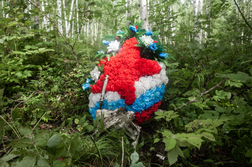 Как потом покажет экспертиза, это кусок алюминиевой запчасти потерпевшего крушение Ан-24. Обломки лежали годами, пока в трудные 90-е местные жители не стали их собирать и вывозить из тайги, чтобы сдать на металл. Но, оказывается, что-то еще сохранилось. На месте находки участники экспедиции возложили венок, произвели из ракетниц салют в честь памяти погибших, а эту точку забили в навигаторы.