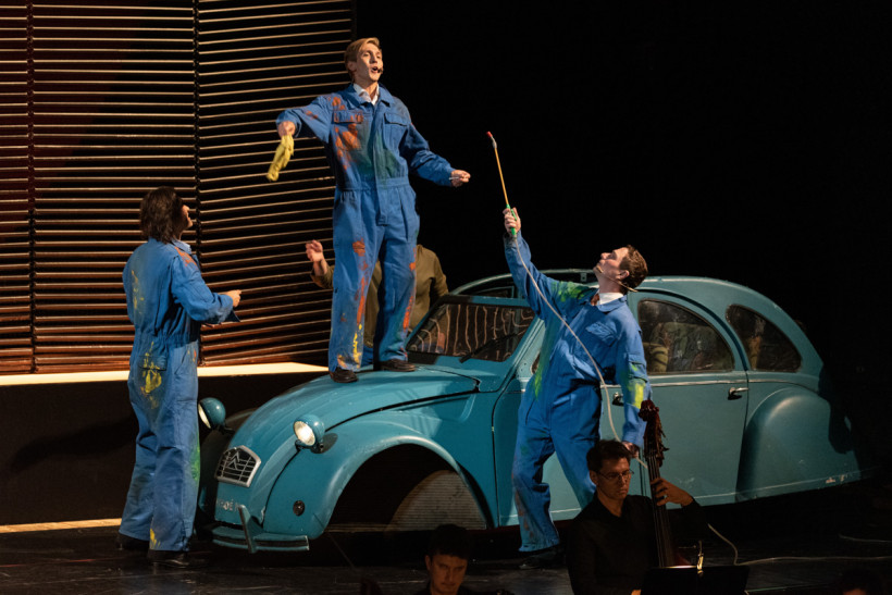 — Жанр произведения можно определить как джазовую оперу, где все сплетено в единое целое, — объясняет главный дирижер театра «Карамболь» Сергей Тарарин. — Как сам Легран нам говорил — давайте от автора отталкиваться — здесь поют, как говорят, и говорят так, как поют. Вот найденный им этот стиль с одной стороны — речитатив, а с другой — как бы и ария. Вроде говорим, вроде поем. Это требует достаточно серьезной работы и освоения. Это непросто для актеров. К нам в театр специально приезжала сестра великого автора — Кристиана Легран, и проводила классы, занималась с солистами, которые готовили роли. Учила их вот этой манере. Потому что тут надо и слово донести, и не выбиться из ритма.