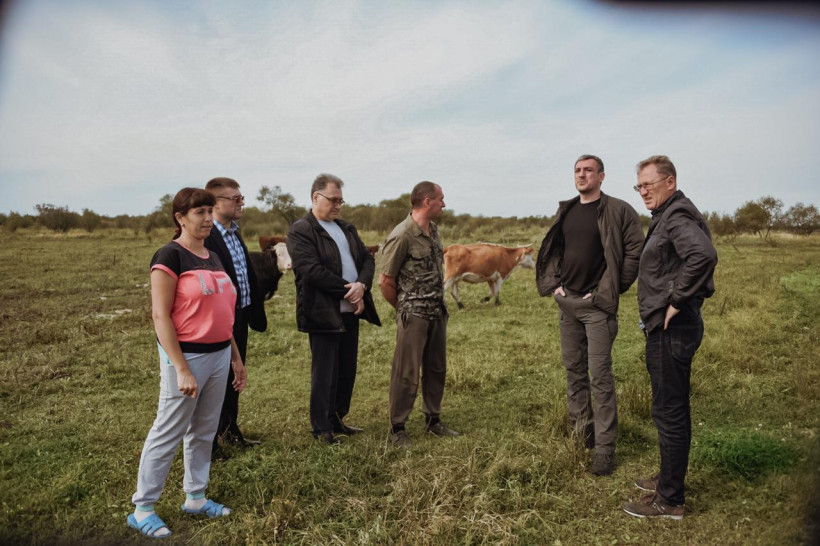 Губернатор вместе с фермерами посетили поля и пастбище. На месте Василий Орлов поинтересовался, какие площади отведены под посевы, как обстоят дела с плодородием почвы.