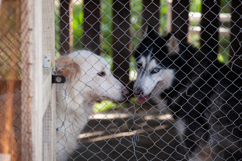 Уже за несколько метров до вольера слышится многоголосый собачий лай — четвероногие чувствуют и приветствуют хозяина. В этом хоре выбивается один голос, который не лает, а будто слова выговаривает.