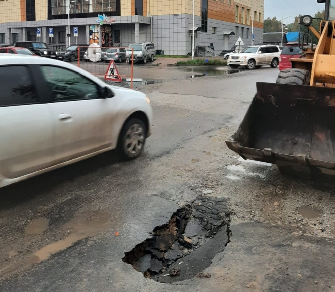 В четверг, 24 сентября, в Благовещенске в районе пересечения улицы Кузнечной и переулка Технического вновь образовался провал на проезжей части.