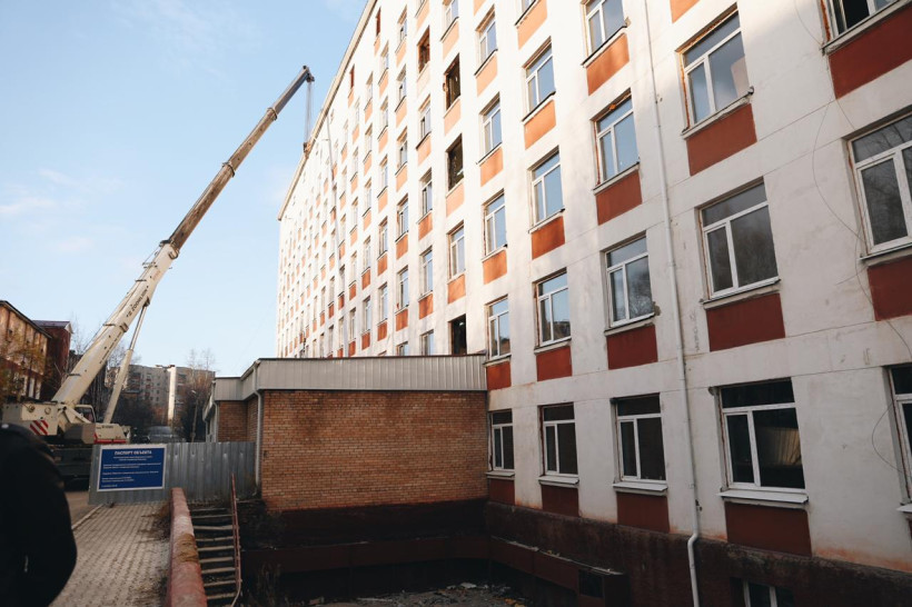 Часть работ завершат в этом году, планируется, что рабочие первыми отремонтируют приемное отделение и реанимацию. На сегодняшний день на объекте уже выполнен демонтаж систем водоснабжения, отопления, водоотведения, монтаж новых канализационных колодцев, стояков отопления и водоснабжения, приборов отопления, также провели зачистку и подготовку стен к оштукатуриванию, демонтируются воздуховоды. Самые сложные работы развернулись на седьмом этаже, где уложено большое количество керамической плитки.