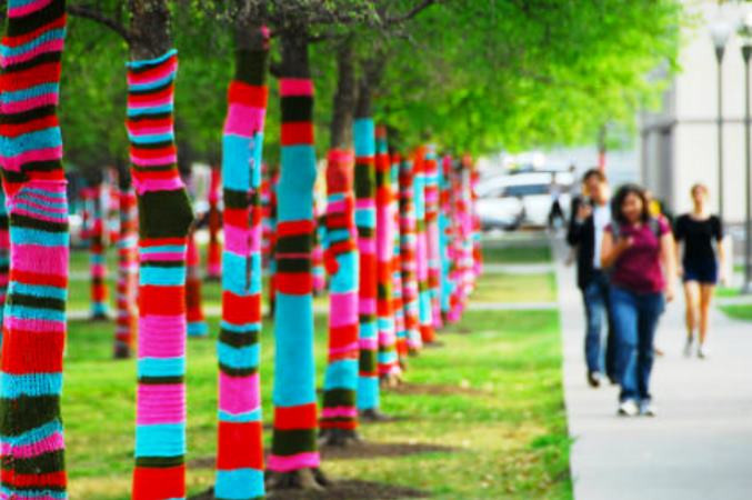 Дом ремесел запустил акцию — ярнбомбинг. В течение месяца от любителей вязания принимают полотна, которыми в начале ноября укутают деревья одной из городских аллей.