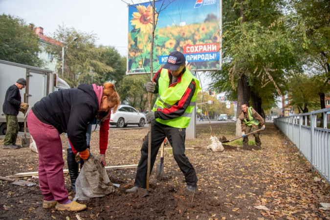 Молодые деревья посадили на расстоянии около 5 метров друг от друга, сообщает пресс-служба мэрии Благовещенска.