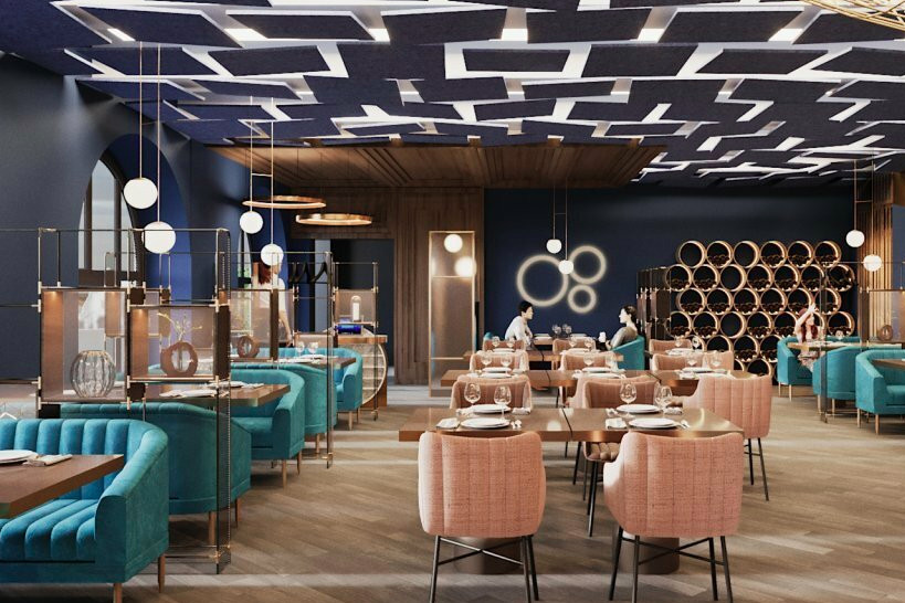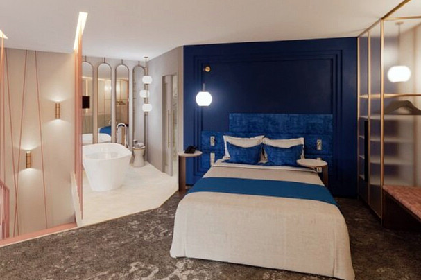 Чаще всего в интерьерах номеров и общественных пространств отеля встречается тема космоса. Стены коридоров украшают схемы-чертежи космодрома Восточный. В номерах гости могут найти элементы космического корабля, ковры с изображением спутника или светильник-орбиту.