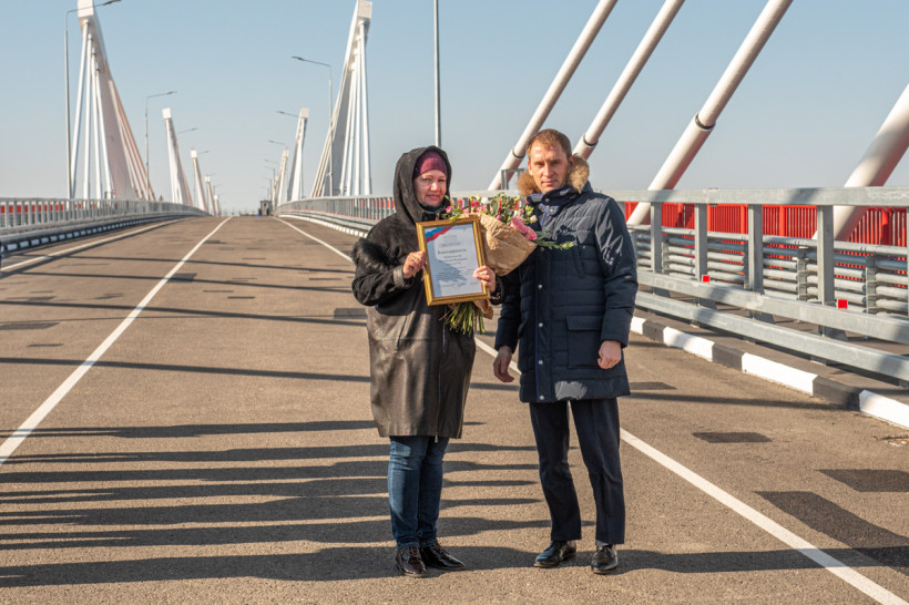 «От всей души хочу поздравить вас с вручением заслуженных наград Правительства Российской Федерации за первый в стране российско-китайский мост! Поздравить и поблагодарить за ваш труд, за профессионализм, за то, что вложили свою душу в важнейший для нашей страны объект. Три года, круглосуточно, в любую погоду велось строительство. Теперь это уже история. И её создали вы — инженеры, дорожные рабочие, монтажники, машинисты, водители, механики! Люди, которые умеют трудиться на совесть!» — обратился к строителям глава Минвостокразвития Александр Козлов.