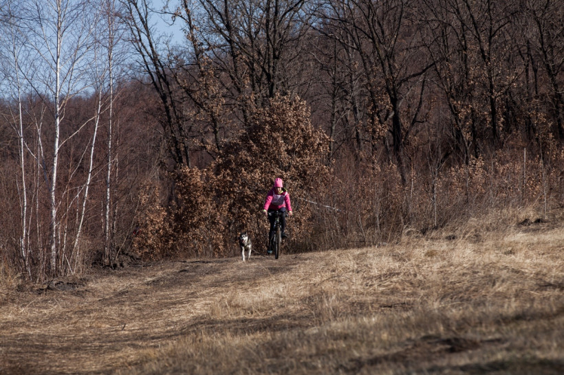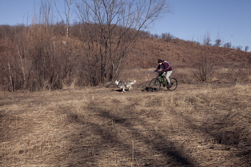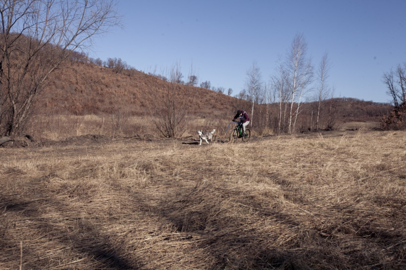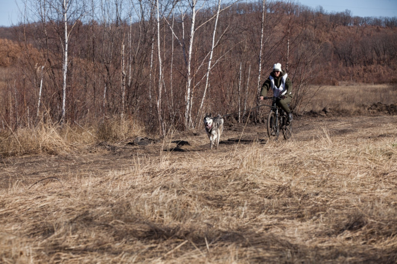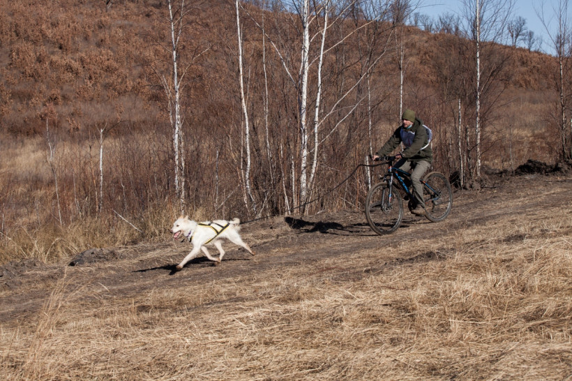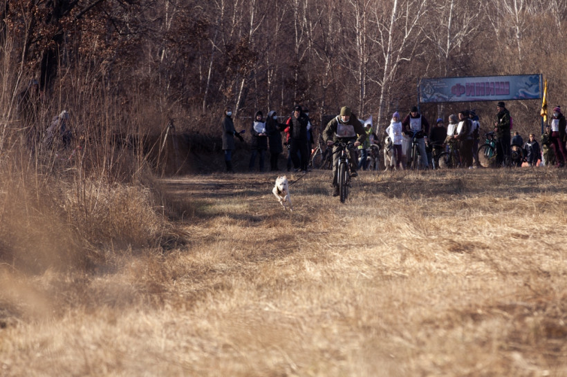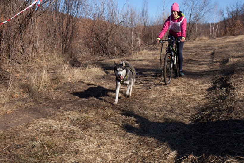 Первыми в бой пошли велосипедисты. Опасность этого вида спорта в том, что не только наездник управляет велосипедом, но и его собака, которая может неожиданно ускориться или дернуть в сторону. Первым добрались до финиша Александр Шушкин с Громом. Судя по заляпанным грязью штанам, гонка далась непросто. Пока Александр старался отдышаться, Гром весело помахивал хвостом и совсем не выглядел уставшим.