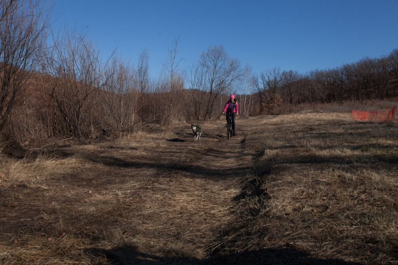 — Вначале было два резких подъема, — немного отдохнув, рассказал спортсмен. — Пришлось на них выложиться. Гром лучше меня справился — всю дорогу бежал. Скорости показали хорошие. Самый опасный участок оказался в конце — спуск метров пятьсот. Разогнались так, что дух захватывало! Здесь важно было удержать велосипед и не свалиться. Ни разу не упал, что радует.