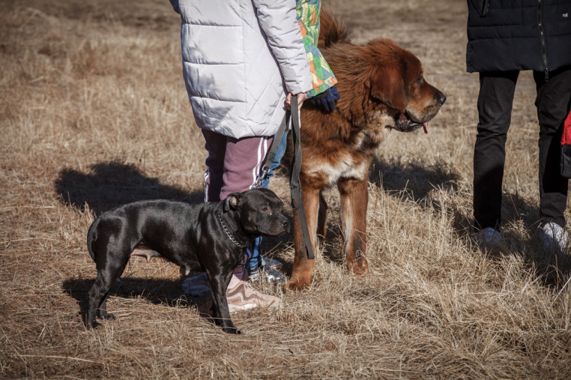 Только ради общения пришел на соревнования и огромный тибетский мастифф Гранд.