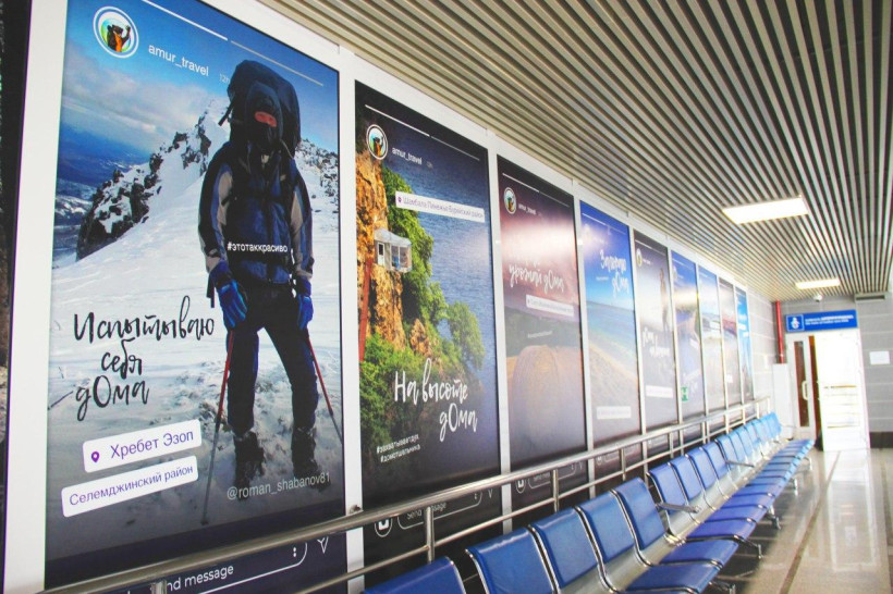 На втором этаже здания благовещенского аэропорта появился «уголок туриста». Здесь представлены истории путешественников и установлена яркая фотозона. Теперь пассажиры, ожидающие вылета или прибытия самолета, могут сделать фотоснимки на фоне достопримечательностей региона и больше узнать о туризме в Приамурье. Туристические истории оформлены в стиле инстаграмных Stories. В них рассказывается о покорении вершит, красоте и удивительных местах Амурской области, людях, открывающих в регионе новые туристические направления, фотографах, способных через снимок передать атмосферу заповедных мест.