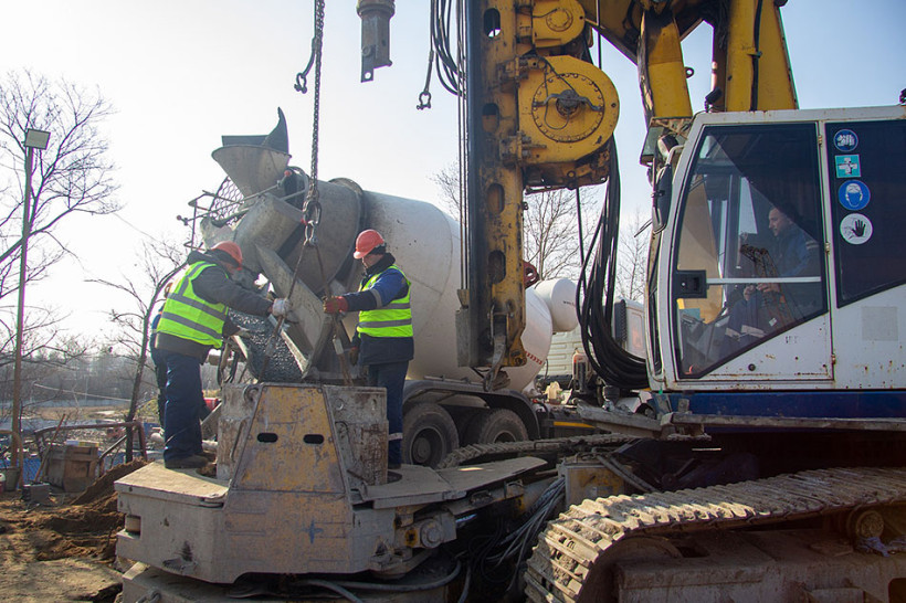 — Уже пробурена первая скважина, погружен армокаркас и начался процесс укладки бетона. Эти работы означают фактическое начало строительства нового путепровода, — отметил начальник участка Александр Борисевич. — На участке задействовано 35 человек и 21 единица техники, работы идут в графике.