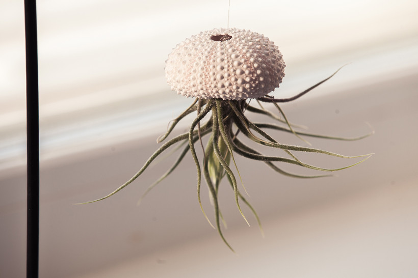 Любители «парящих» тилландсий также крепят к корням растений леску и подвешивают их вниз головой: растения спокойно развиваются и в таких условиях. Усложненный вариант — подвесить панцирь морского ежа, а уже в него вставить тилландсию. Тогда у вас дома появятся космические медузы.