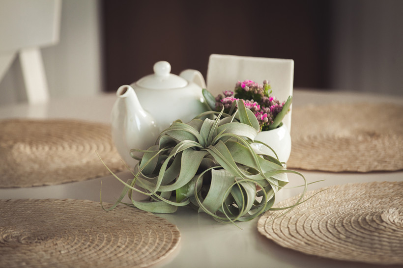 Неприхотливость тилландсий дает большой полет фантазии для украшения любого интерьера. Конечно, можно просто поставить растение в горшок, но поскольку отсутствие корней — одно из главных их преимуществ, обычно для них выбирают прозрачную посуду (например, стакан: пустой или с декоративными корнями). Еще один популярный вариант — ракушки, панцири морских ежей.