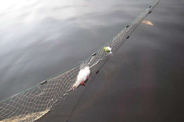 У задержанных изъяли металлическую лодку с мотором и вместе с ней сеть.