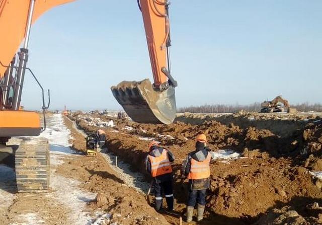 На площадке строительства взлетно-посадочной полосы основание одного километра, из трех необходимых, подготовлено под устройство противопучинистого слоя и возведения насыпи. Параллельно выполняется устройство водосточной дренажной сети, 800 метров по 400 метров с двух сторон обустроены коллекторами, колодцами, проложены пластиковые трубы, в работе еще 2 600 метров. Зимой эта работа продолжится.