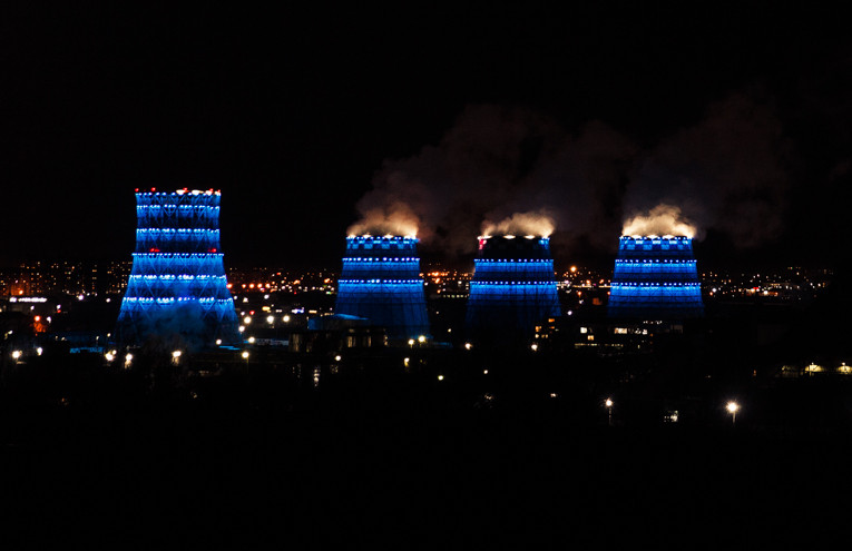 Все светильники российского производства, изготовлены в Казани. Комплектующие и система управления – германские. Проект разработала и воплотила в жизнь благовещенская компания. На данный момент настроены 5 программ освещения, в том числе градирни будут переливаться в цветах российского флага. Всего было проложено 7 километров кабеля.