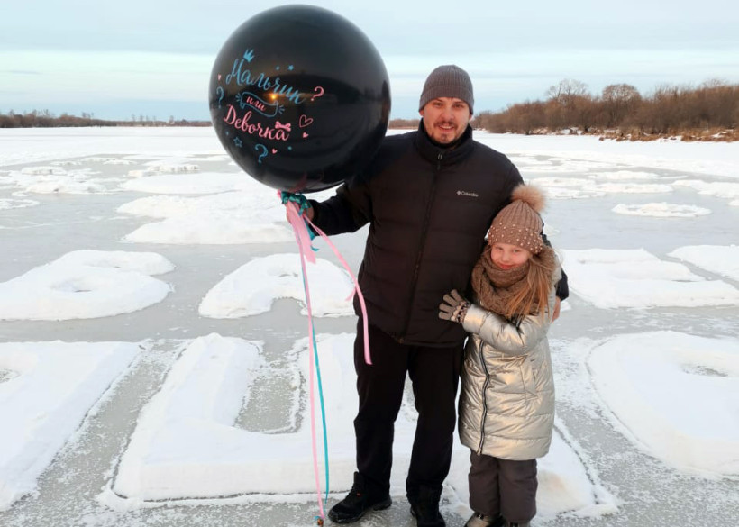 «У нас будет девочка!»: благовещенская семья узнала пол будущего ребенка на ледовой открытке