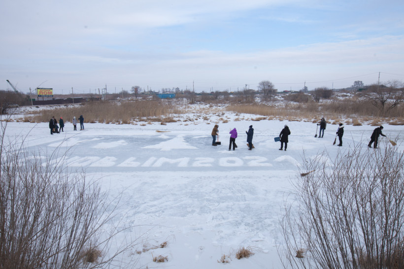 «Память об амурском волшебнике должна жить»: молодежь создала ледовую открытку на реке Алим