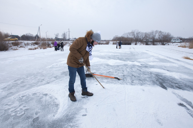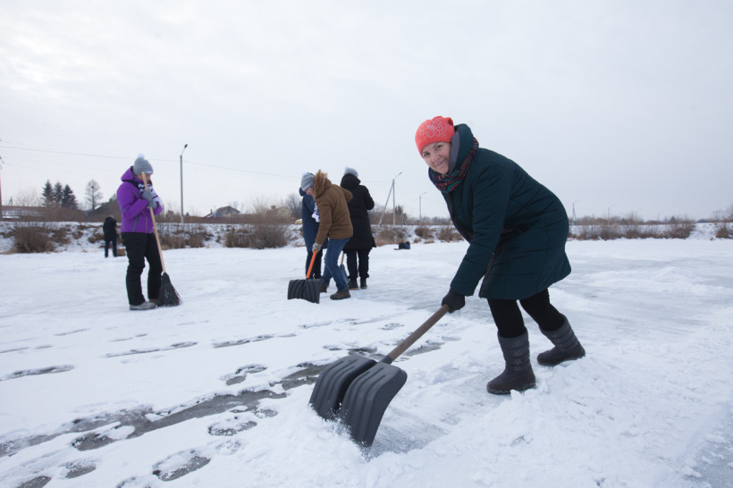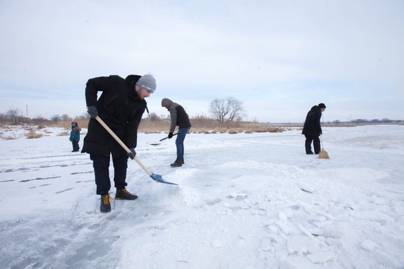 — Очень мало снега, приходится собирать по краям и сносить на открытку. Но хорошо, что вообще есть! — говорит Игорь Солоников, разравнивая снег. Кстати, молодой человек постоянный донор крови, а сейчас хочет сдать плазму для переболевших ковид — он недавно перенес заболевание.