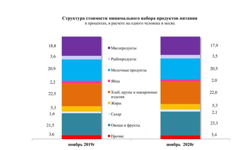 Индекс потребительских цен на товары и услуги в ноябре 2020 года по Амурской области составил 100,5 % (в ноябре 2019 г. — 100,3 %). Продукты за месяц подорожали на 0,9 процента, сообщает Амурстат.