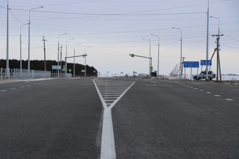 Подрядчик также укрепил откосы и обочины, выложил тротуар с пешеходным ограждением для доступа пешеходов к двум посадочным площадкам автобусных остановок с павильонами, расположенными в зоне перекрестка, установил линию электроосвещения общей длиной 360 м из 13 опор и 14 светильников, обустроил пешеходный переход с импульсным светофором.