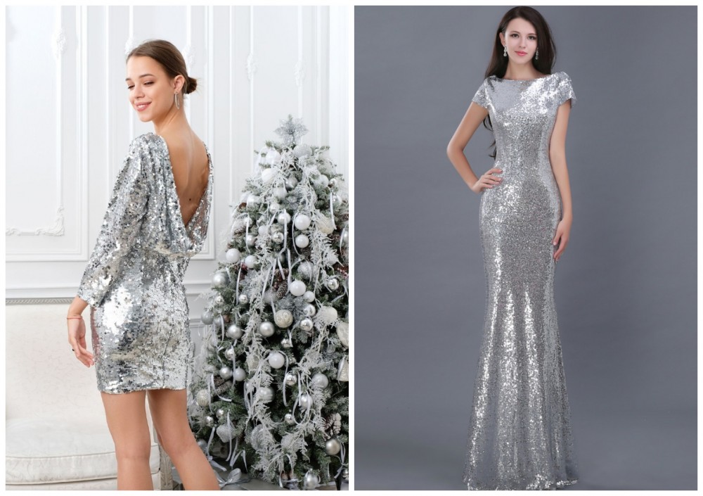 Новогодний наряд, выдержанный в нейтральных тонах, прекрасно дополнят аксессуары с камнями, металлизированной вышивкой, голографическим эффектом.