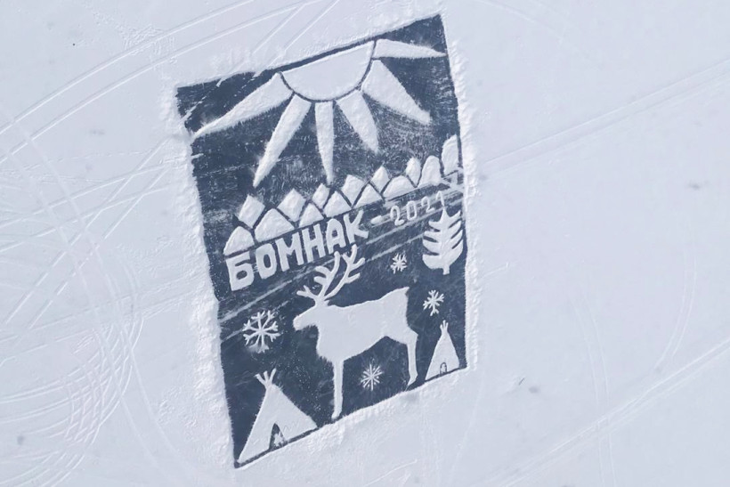 Фигуру могучего рогатого оленя искусно вытоптала своими валенками работница клуба Бомнака Татьяна Федорова.