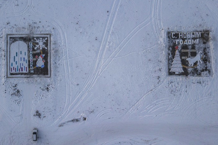 В космограде создали сразу две открытки. По инициативе ЦЭНКИ руководитель общественной организации «Циолковский — город будущего» Алексей Тимченко собрал команду: 20 студентов, семьи сотрудников ЦЭНКИ, участие приняла и экс-председатель избиркома Светлана Михолап. Несмотря на то что в городе и рядом с ним нет подходящего водоема, ребята несколько дней махали лопатами, ледоколами и метлами на территории бывших вертолетных площадок.