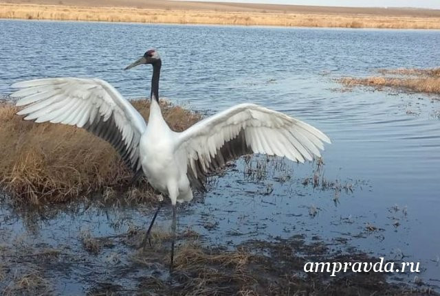Зимует на полыньях в Приморье: журавль из Муравьевского парка сбился с пути на юг