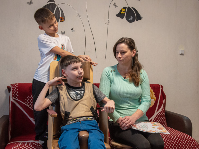 У 13-летнего мальчика диагноз — ДЦП (детский церебральный паралич). Ребенок не может самостоятельно ходить, с трудом разговаривает, не в состоянии держать ручку или карандаш. Чтобы выйти на прогулку, хрупкой маме приходится выносить сына на улицу на руках. При этом ДЦП у Остапа — не врожденное заболевание.