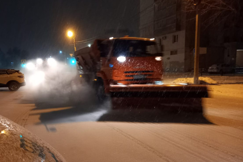 В Благовещенске дорожники посыпают улицы и убирают выпавший снег