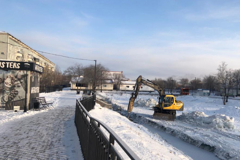 В парке Дружбы в микрорайоне Благовещенска подрядная организация приступила к берегоукреплению водоема. Начались демонтажные работы — на пруду вырезают лед, чтобы установить специальные металлические конструкции.