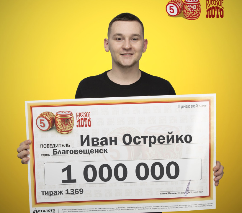 Житель Амурской области Иван Острейко стал одним из победителей 1369-го тиража лотереи «Русское лото». Менеджер из Благовещенска купил билеты на новогодний розыгрыш родителям и сестре. Домочадцы не смотрели прямой эфир, проверили результаты на сайте «Столото».