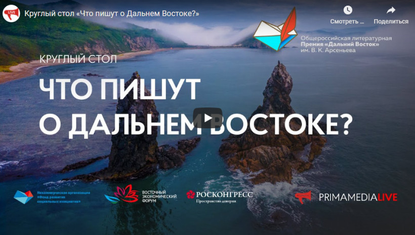 Узнать больше о дальневосточной литературе смогут зрители виртуальных круглых столов, посвященных Общероссийской литературной премии «Дальний Восток» им. В.К. Арсеньева. Виртуальные встречи с участием писателей, издателей, редакторов, критиков и других литературных экспертов будут проходить ежемесячно с февраля по ноябрь. Стартуют круглые столы в четверг, 4 февраля.
