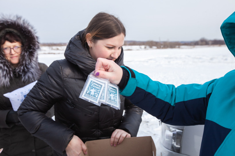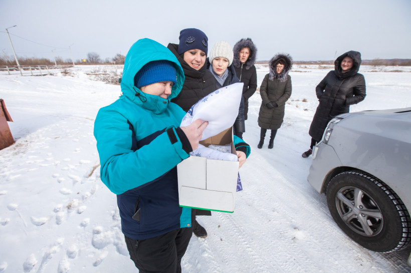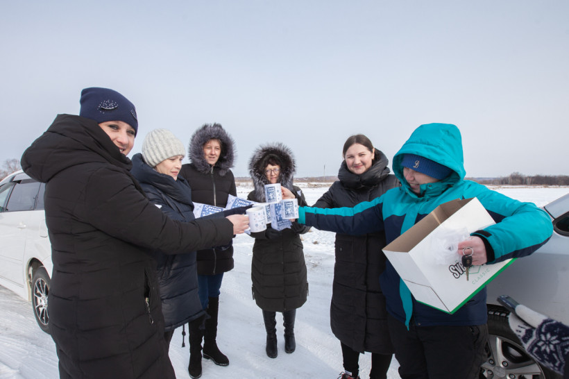 Девушки обрадовались подаркам от «Амурской правды». Они надеются, что в следующем году на сувенирах появится и их ледовая открытка.